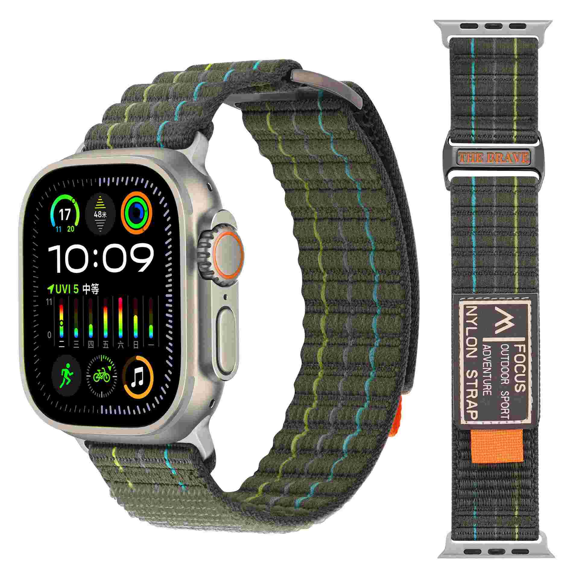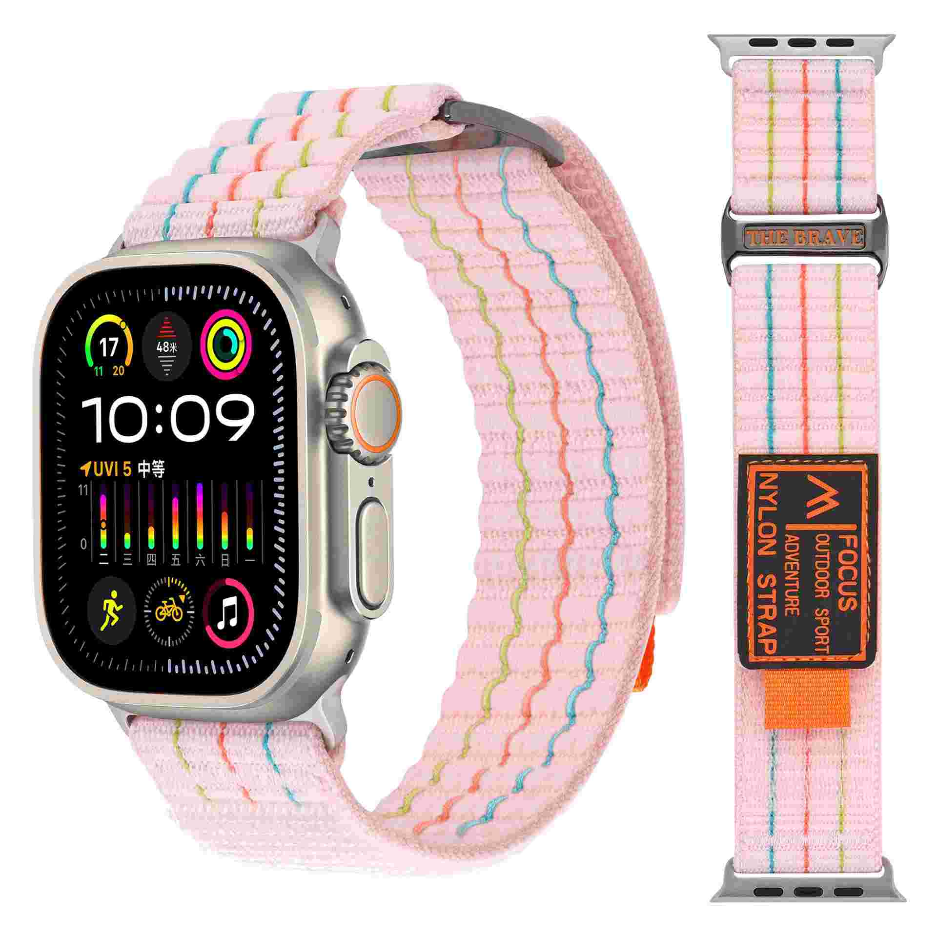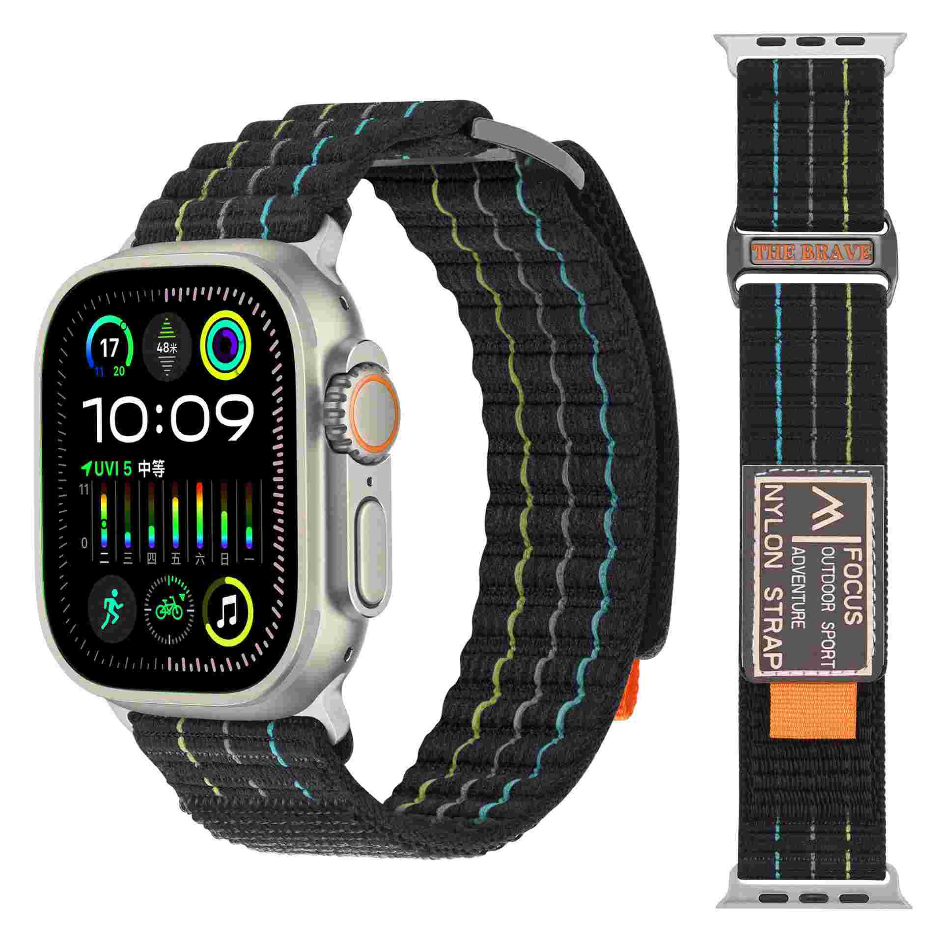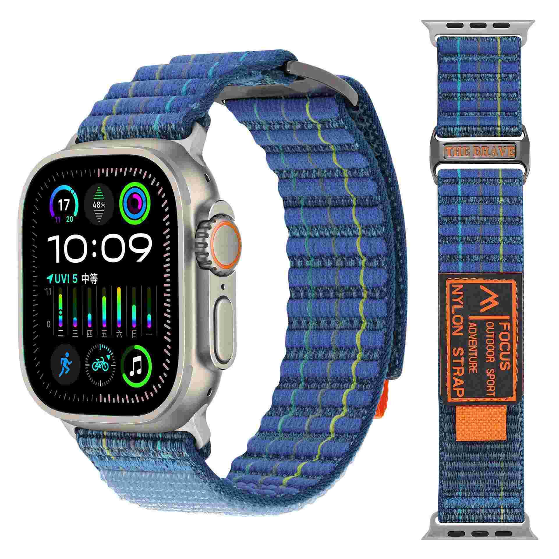 Double-Segment Sports Nylon Loop Watch Band For Apple Watch Ultra 2 Band 49mm For Iwatch Series 10 9 8 7 6 38 40 41 42 45 46 Mm(NLB-418)