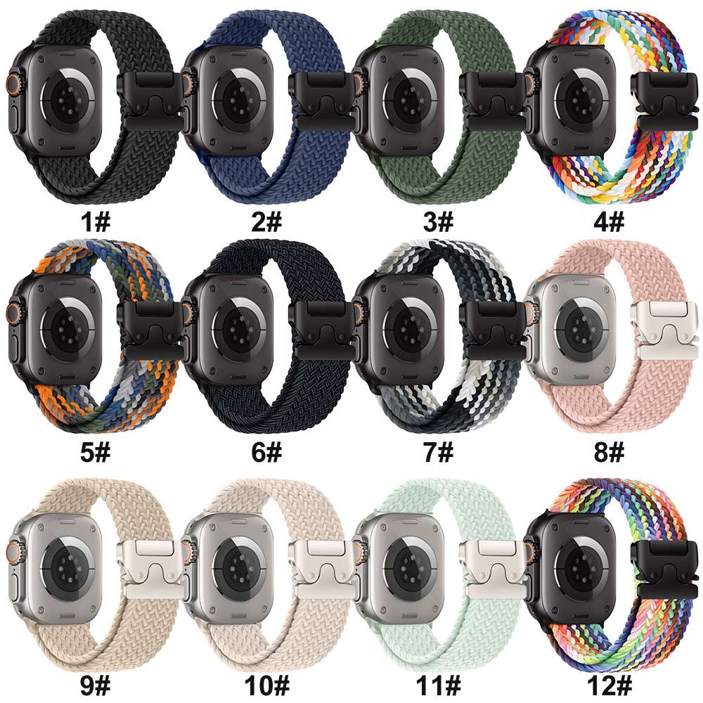 New Parachute Buckle Elastic Braided Nylon Loop Strap For Apple Watch Ultra 2 49mm Band For Iwatch Series 10 9 8 41 42 45 46 Mm(NLB-422)