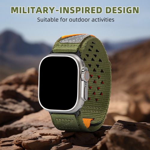 Perforated Loop Hiking Nylon Canvas Sport Watch Band For Apple Watch Ultra 2 49mm Band For Iwatch 10 9 8 7 38 40 41 42 44 45 Mm(NLB-409)