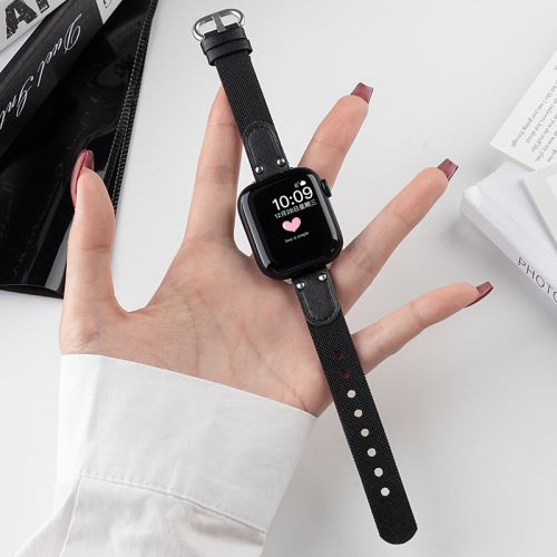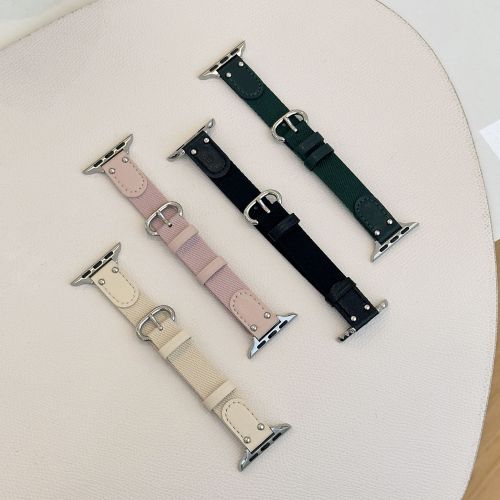Fashion Nylon Spliced Leather Watch Strap For Apple Watch Ultra 2 49mm Band For Iwatch Series 9 Se 8 7 6 5 38 40 41 42 44 45 Mm(NLB-383)