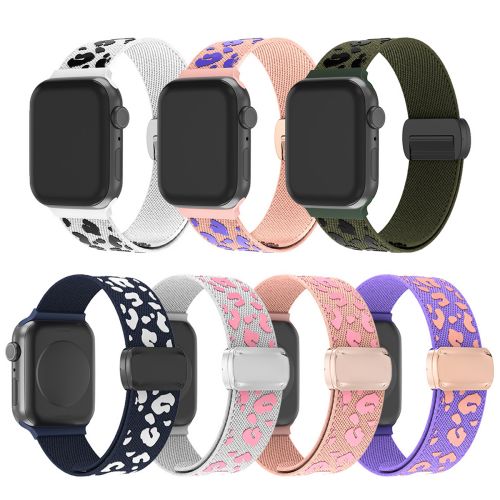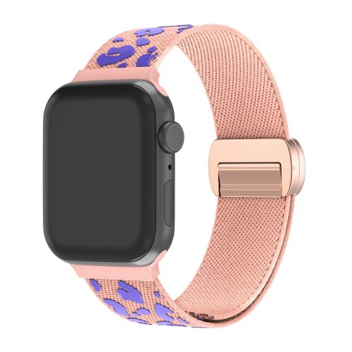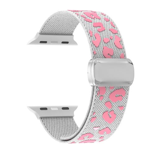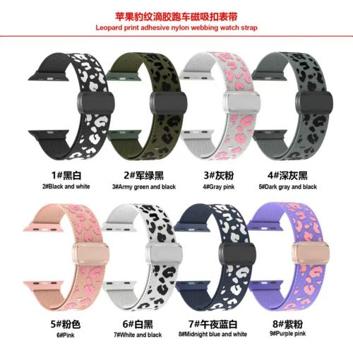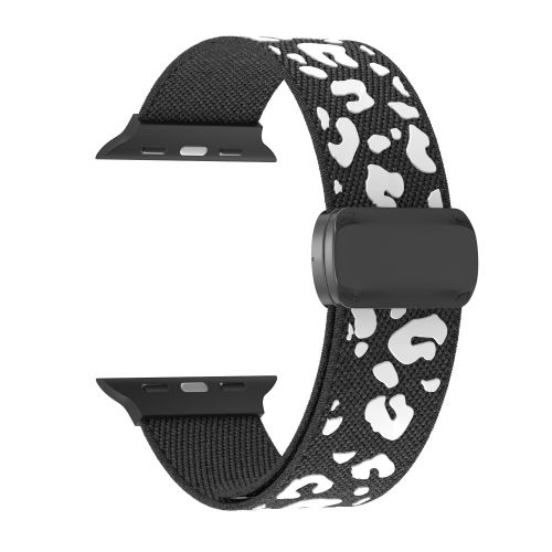 Leopard Print Epoxy Magnetic Clasp Nylon Woven Watch For Apple Watch Ultra 2 Band 49mm For Iwatch Series 10 9 8 7 41 42 45 46 mm (NLB-471)
