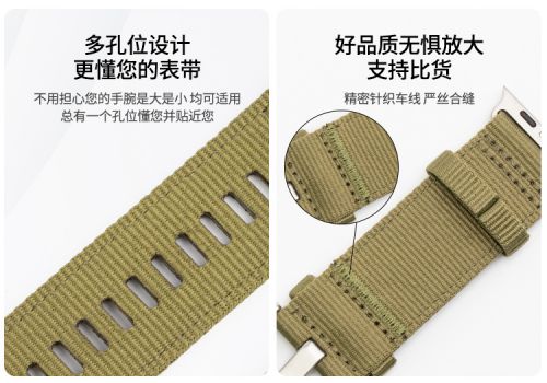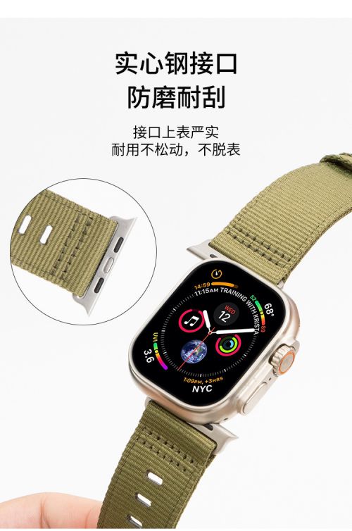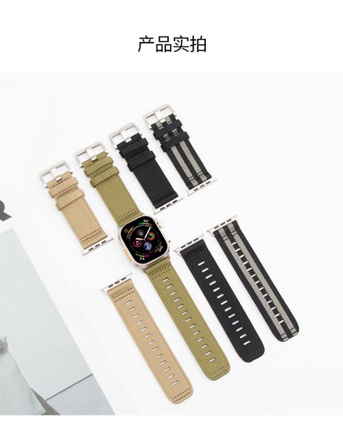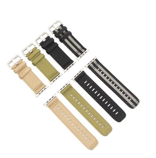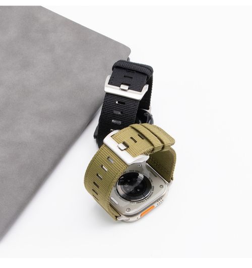 Tactical Nylon Canvas Sport Watch Band For Apple Watch Ultra 2 Band 49mm For Iwatch Series 10 9 8 7 6 5 38 40 41 42 44 45 46 mm (NLB-473)